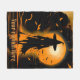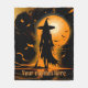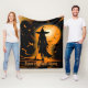 Orange, black, silhouette witch, custom caption fleece blanket