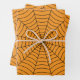 Orange Black spider web Halloween pattern Wrapping Paper Sheets. Spider web Halloween elegant cool fun pattern. Fun and cool gift wrapping supply for kids and adults. Spooky Halloween cobweb design on custom Orange.