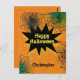 A personalized Halloween postcard to send to a grandchild, family, friend and more. Features a bunch of cobwebs and Halloween colors in orange, yellow, green and black. you can easily personalize with a name.