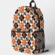 Orange Black White Checkered Fleur-de-lis Design Printed Backpack