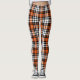 Orange Black White Plaid Tartan Pattern Design Leggings