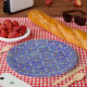 Orange, Blue Scrolled Diamond Pattern Paper Plates