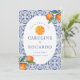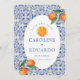 Orange Blue tile Mediterranean Wedding QR Code Save The Date