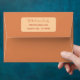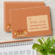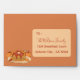 Cute fall orange brown envelope with the watercolor illustration of some pumpkin spice pancakes on the outside left lower corner and a plaid pattern on the inside . You can add the names and addresses using the template fields or you can erase them and leave an empty space to fill them by hand at a later time .