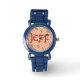 Brighten up your child's day with our Blue Silicone Kids Watch, featuring a playful design with dinosaurs and a personalized monogram. The vibrant blue color adds a cheerful touch, while the whimsical dinosaur illustrations bring charm and fun. Customize it with a name or initials to make it uniquely theirs. This silicone watch is perfect for kids, offering durability and comfort for daily wear. With its easy-to-read dial and adjustable strap, it's both practical and stylish, making it a favorite accessory for young adventurers.