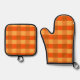 Orange Buffalo Plaid Gingham Checkered Oven Mitt & Pot Holder Set