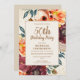 Orange Burgundy Fall Floral Gold Glitter 50th Invitation