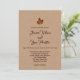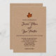 A classic orange maple leaf accents this traditional wedding invitation, making it perfect for a rustic or fall wedding. It is shown on the basic paper; however, I recommend the weight and texture of the linen paper that coordinates well with the burlap look of the paper.