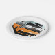 An orange bus parked up. This design looks really effective on these Paper Plates