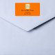 Orange colored background. Personalize and add your company name, address and business logo. Black text.
