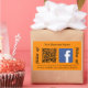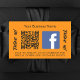 An orange colored background. Personalize and add your business name, your own qr code to your Facebook account and a text. Black text. With the text x2: Follow us!