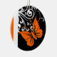 striking black, white and orange design - featuring an orange butterfly against a black background with pretty white floral swirls.