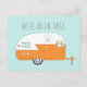 These change of address postcards feature an original illustration of an orange camper also known as a caravan.