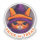 Orange Cat Purple Witch Hat Trick Treat Halloween Sticker