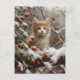 Orange Cat Winter Berries Vintage Postcard