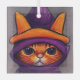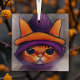 Orange Cat with Purple Witch Hat Halloween Glass Ornament
