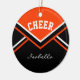 A Cute Cheerleader 📣 Ornament - featured in a white, black and orange with DIY name. Two side print. ✔NOTE: ONLY CHANGE THE TEMPLATE AREAS NEEDED! 😀 If needed, you can remove the text and start fresh adding whatever text and font you like. 📌If you need further customization, please click the "Click to Customize further" or "Customize or Edit Design" button and use our design tool to resize, rotate, change text color, add text and so much more. ⭐This Product is 100% Customizable. Graphics and / or text can be added, deleted, moved, resized, changed around, rotated, etc... ⭐99% of my designs in my store are done in layers. This makes it easy for you to resize and move the graphics and text around so that it will fit each product perfectly. 📌 (Please be sure to resize or move graphics if needed before ordering) You can also "TRANSFER DESIGN" on other Zazzle products and adjust the design to fit most of Zazzle items. (button is down on the right side of the page) This design is made with high resolution vector and/or digital graphics for a professional print. 📌NOTE: (THIS IS A PRINT. All #Zazzlemade product designs are "prints" unless otherwise stated under "About This Product" on the left side of this page) The design will be printed "EXACTLY" like you see it on the screen and on the product...so please make sure when you do your changes on the resizing of any of the graphics or text that it fits in the areas correctly and that your spelling and wording is how you like it to be in size, color and font. If you have any questions about the "DESIGN ONLY" or need help please contact me at ✉ siggyscott@comcast.net or visit my store link: https://www.zazzle.com/store/designsbydonnasiggy (Copy and Paste) I'll be happy to help. 📌 ALL OTHER QUESTIONS (shipping, refund, the printing, the product, etc...) please contact Zazzle or the Maker ⭐DIRECTLY⭐. Thank you for the support and stopping by my store - DesignsbyDonnaSiggy. © Donna Siegrist ⭐⭐⭐ ZAZZLE promises 100% satisfaction. If you don't absolutely love it, Zazzle will take it back! ⭐⭐⭐ 1-888-8ZAZZLE (1-888-892-9953) Phone hours: Mon - Fri: 9AM - 5PM PT (12PM - 8PM ET)