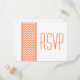 Chic and modern Chevron Border Wedding Response Postcard featuring a simple chevron pattern border in orange and white. This stylish design will set the tone for an elegant wedding. Easy to customize, simply add your wedding details in the text fields provided. Click "Customize It" to find more personalization options.