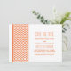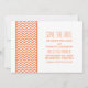 Plain white envelopes are included with paper invitations and will come to fit the invitation size you select. If you don’t need the envelopes, you may choose to not receive them by selecting the dropdown below "Envelopes" and choosing "None." If you’d like to have a design on your envelopes, you can browse all of these available envelopes to find the design that complements your Orange Chevron Border Save The Date Invite.