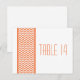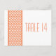 Chic and modern Chevron Border Table Number Postcard featuring a simple chevron pattern border in orange and white. This stylish design will set the tone for an elegant wedding. Easy to customize, simply add the appropriate table number(s) in the text field provided. Click "Customize It" to find more personalization options.