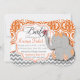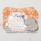 Plain white envelopes are included with paper invitations and will come to fit the invitation size you select. If you don’t need the envelopes, you may choose to not receive them by selecting the dropdown below "Envelopes" and choosing "None." If you’d like to have a design on your envelopes, you can browse all of these available envelopes to find the design that complements your Orange Chevron Elephant Baby Shower Invite.