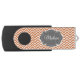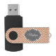 Add an elegant touch to your computer workspace with a Orange Chevron Personalized USB Swivel Flash Drive. Flash drive design features a orange chevron background and ornate gray tag to personalize with your name and monogram. Additional items available with this design as well. Please contact me directly for assistance with personalization.