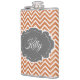 Enjoy your favorite spirits when you're away from home with a personalized Orange Chevron Flask. Flask design features a orange chevron background and an ornate gray tag to personalize with your name and monogram. Additional items available with this design as well. Please contact me directly for assistance with personalization.