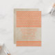 Plain white envelopes are included with paper invitations and will come to fit the invitation size you select. If you don’t need the envelopes, you may choose to not receive them by selecting the dropdown below "Envelopes" and choosing "None." If you’d like to have a design on your envelopes, you can browse all of these available envelopes to find the design that complements your Orange Chic Chevron Wedding Invite.