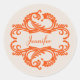 Elegant and sophisticated Chic Damask Stickers featuring a soft beige background and a stylish damask flourish embellishment in orange. This modern design is easy to customize with your own text. Click "Customize It" to find more personalization options.