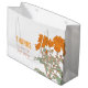 Show your appreciation to your flower girls or other wedding attendants with this thank you wedding favor gift bag. Perfect to fill with a large special gift to show your appreciation. A pretty botanical outline graphic art late summer fall chrysanthemum flower gift bag in white, orange, brown and green. Matches a range of other wedding products in the orange chrysanthemum outline art range. Ideal for a early autumn / autumnal fall or orange flower themed wedding. Customize / personalize these gift favor bags with your attendants title, name and a personal message or thanks. Currently reads Thanks Flower Girl Amelia. Uniquely designed by Sarah Trett for www.mylittleedenweddings.com