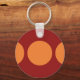 This bold geometric pattern features a large orange dot in the center and two orange half circles on the edges of a red background.