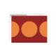This bold geometric pattern features a large orange dot in the center and two orange half circles on the edges of a red background.