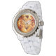Women’s rhinestone white enamel watch with an image of a dazzling orange citrine. See matching round button, round charm, drop earrings, swirl metal keychain and round necklace. See the entire Gemstones & Medallions Watch collection in the ACCESSORIES section.