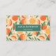 Business cards with a retro vibe. A pattern composed of sliced oranges, whole oranges, green leaves and white blossoms.