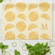 Destei's pattern of illustrated orange citrus fruits together with a personalizable monogram letter in one corner.