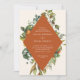 Orange citrus watercolor floral and foliage wedding invitation card. Beautiful handprinted floral watercolors and modern script text. Modern on trend design
