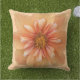 Dress up your indoor or outdoor patio furniture with this decorative, square pillow that features the photo image of an orange Collarette Dahlia bloom on a peach color background. A lovely, floral design! Select pillow style and fabric.