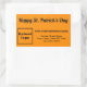 Rectangle sticker with Happy Saint Patrick’s Day greeting, your business name and other information of your business. You can use it as accessory of your product packaging material to promote your product brand name. You can also use it as marketing material to advertise your business to customers or clients. Customizable sticker that you can use to build brand name awareness. Design colors are black texts on orange color background. To customize this sticker, upload your business logo, type your business name, address and phone number. After uploading logo and typing texts, please check the appearance. If the appearance is pleasing to you, you can place your order now. If you need to resize and move the logo and texts to fit on this sticker, please change in the design tool. You can also make other changes in the design tool according to the appearance of this sticker that you prefer such as changing the background color, font color and font style. Happy Saint Patrick’s Day! Wishing you more sales this holiday.