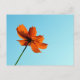 A single, orange cosmos flower is set against a blue sky in Tokyo, Japan.