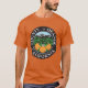 My 11 yo wore adult XL (5’7” 165#). The 8yo is small framed. She wore adult small and tied it in the back. Grandma wore adult large with long sleeve shirt underneath. Tall girl adult medium. Dark haired male adult large. Good quality dark Heather gray, Gildan brand shirt. -it was next up from basic choice and cost about $20 per shirt. Not too thick or thin. Washed and dried well, no major shrinkage. Not see-through. Can wear a bra under it fine. Screen print is just as shown and well done, front and back.