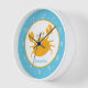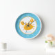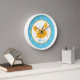 This clock features our cute orange crab with an orange border and a bright blue background with white numbers. Add a name, if desired. © Art by Jess