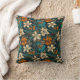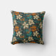 Orange Cream and Green Batik Florals Pattern Throw Pillow