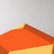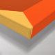 The design features an interlocking pattern of bright orange cubes. It could be seen as reminiscent of the art of M.C. Escher, but it simply uses basic geometric forms to achieve an attractive and elegant effect. It looks like an endless staircase in various shades of orange.