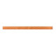 The design features an interlocking pattern of bright orange cubes. It could be seen as reminiscent of the art of M.C. Escher, but it simply uses basic geometric forms to achieve an attractive and elegant effect. It looks like an endless staircase in various shades of orange.