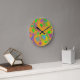 A pile of brightly coloured cupcakes decorated with marshmallows, chocolate stars, hearts, jelly sweets. sprinkles and glitter - ready to eat! Wall clock with an orange, blue, purple and green customizable design for you to personalise with your own text, pictures and ideas. Other style options available. An original photograph stylised using digital techniques by Jess Perry.