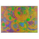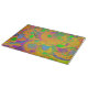 A pile of brightly coloured cupcakes decorated with marshmallows, chocolate stars, hearts, jelly sweets. sprinkles and glitter - ready to eat! Cutting board with an orange, blue, green and purple customizable design for you to personalise with your own text, pictures and ideas. Image created from an original photograph stylised using digital techniques.