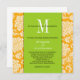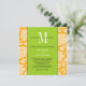 Orange Damask Green Monogram Wedding Invitation
