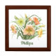 Personalize this wood and tile keepsake box featuring a bouquet of peach, yellow and orange daylilies. Painted from flowers grown in the artist's own garden - this is not a vintage reproduction or photograph!