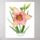 An original painting of a dusty coral orange "Svengali" variety of daylily (hemerocallis) done in the style of a vintage botanical watercolor print, but with a modern look. Painted from a flower grown in the artist's own garden - this is not a vintage reproduction!