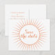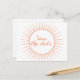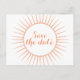 Sophisticated and elegant Deco Retro Save the Date Postcard in orange featuring a circular art deco ornamental sunburst design. Easy to customize, simply add your wedding details in the text fields provided. Click "Customize It" to find more personalization options.